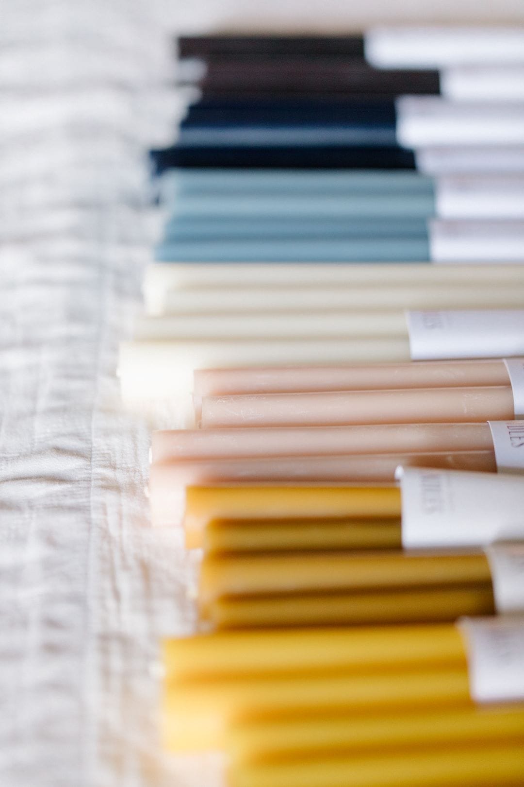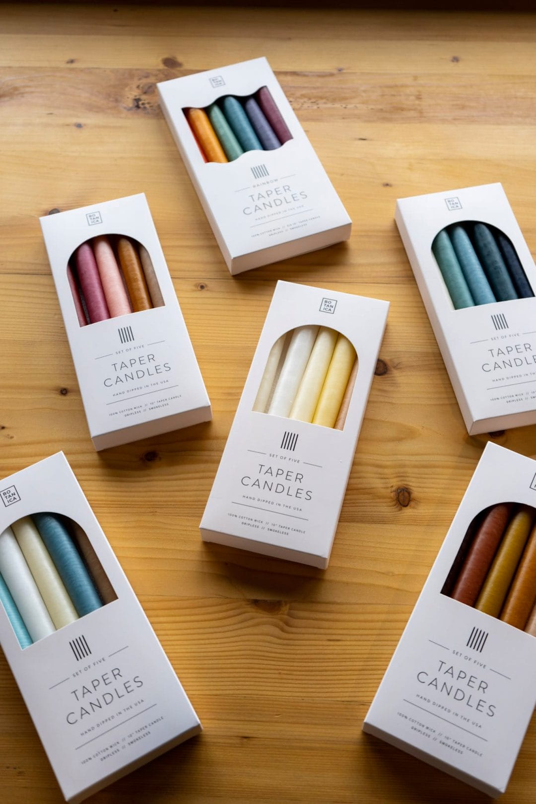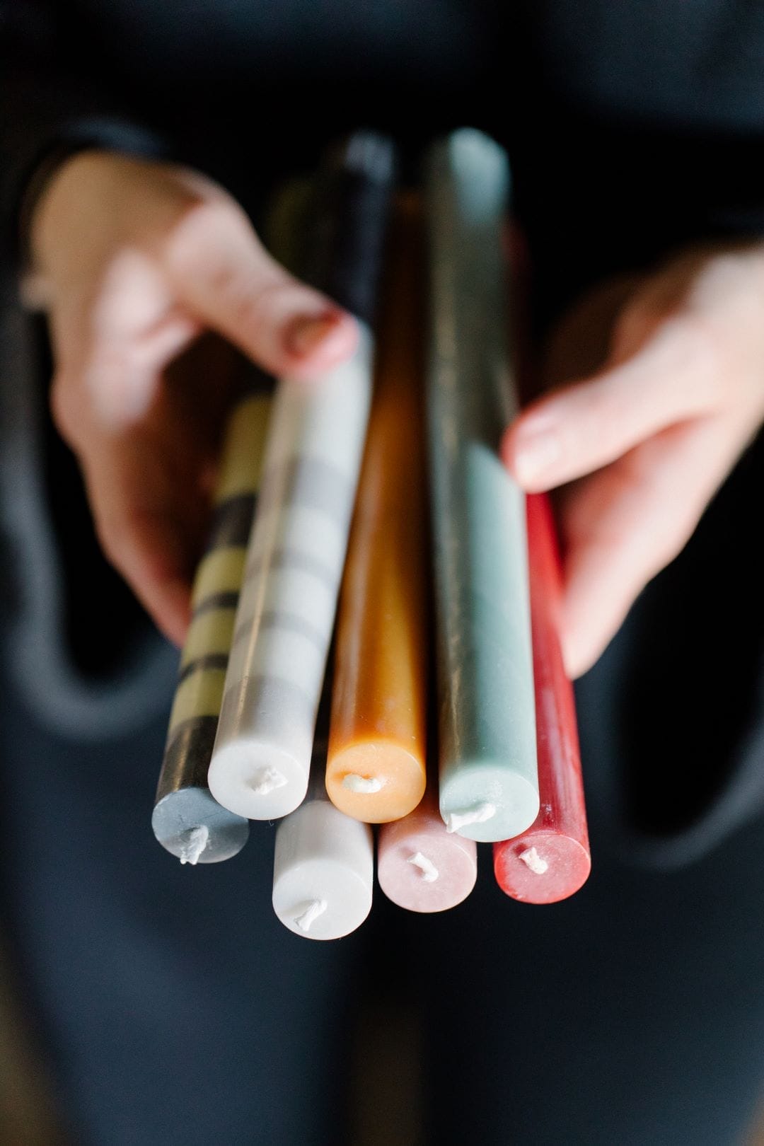 we’ve gathered a selection of hand-dipped candles to feature in the retail portion of our company. The technique with which they are made makes them a true work of art. Being hand-dipped anywhere from 20-35 times allows for a clean and drip-free burn (which is why we love to light these in our homes, mess-free). The colors of these tapers are rich and have incredible depth. This can also be attributed to the process by which they are created.