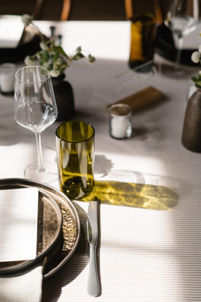 Glassware is the finishing touch that brings a table to life, adding sparkle, sophistication, and personality to your wedding design. The way a delicate coupe catches the candlelight, the shimmer of a tinted goblet against soft florals, or the crisp elegance of classic crystal—all of these small details create an ambiance that feels intentional and refined. Beyond aesthetics, the right glassware enhances the experience, making every toast more special and every sip more memorable. Whether it’s vintage-inspired etching, modern minimalism, or a playful pop of color, glassware doesn’t just serve a purpose—it elevates the entire celebration, making your tablescape feel as magical as the moments shared around it.