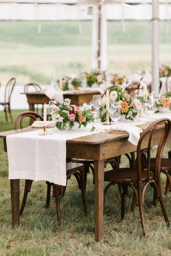 Linens are the foundation of your wedding decor, setting the tone for every table and tying your entire aesthetic together. They soften the space, adding warmth, texture, and depth in a way that instantly elevates the atmosphere. A billowing, romantic table runner can make a reception feel effortlessly elegant, while crisp, tailored napkins bring a refined, polished touch. The right color palette—whether classic neutrals, rich jewel tones, or airy pastels—creates a mood that enhances every floral arrangement, place setting, and candlelit glow. Linens don’t just decorate a table; they define it, transforming an ordinary surface into a place where laughter, love, and unforgettable moments unfold.