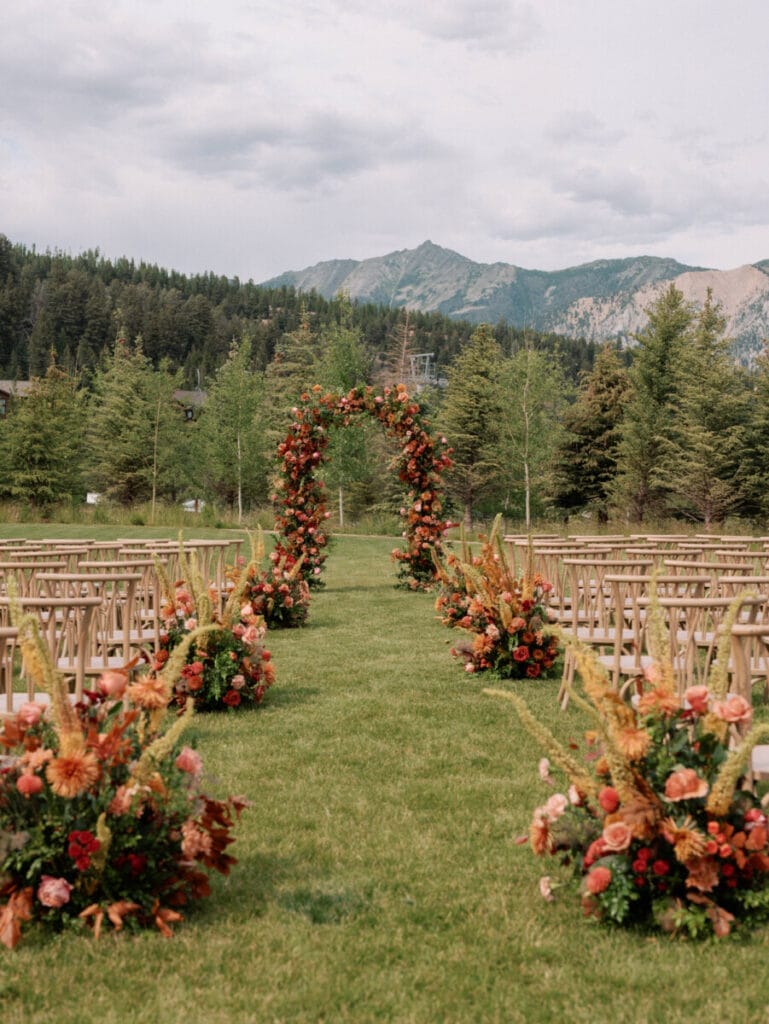 Becca and Austin’s Montage wedding featured stunning jewel toned florals and elegant ceremony layout utilizing our Charlotte Chair. We love the Summer view of the Mountains under the Big Sky paired with beautiful rich tones.