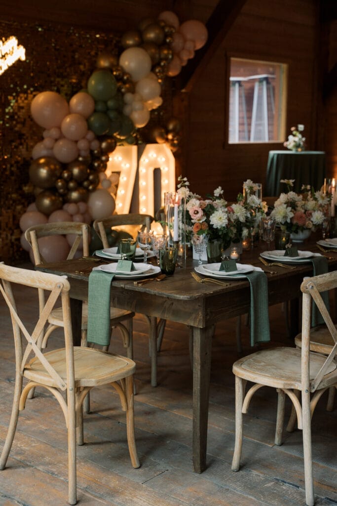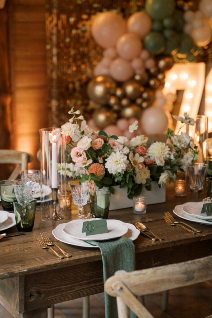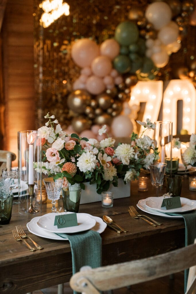 Janet’s 70th Surprise Birthday Party was a beautiful celebration for the books. Using our Mia dinnerware collection paired with pink and green tones, we are obsessed with how this look turned out!