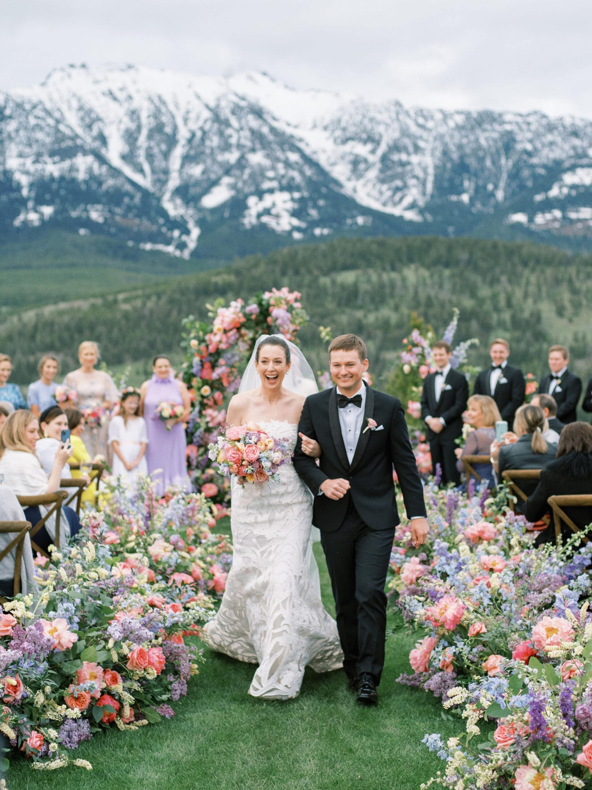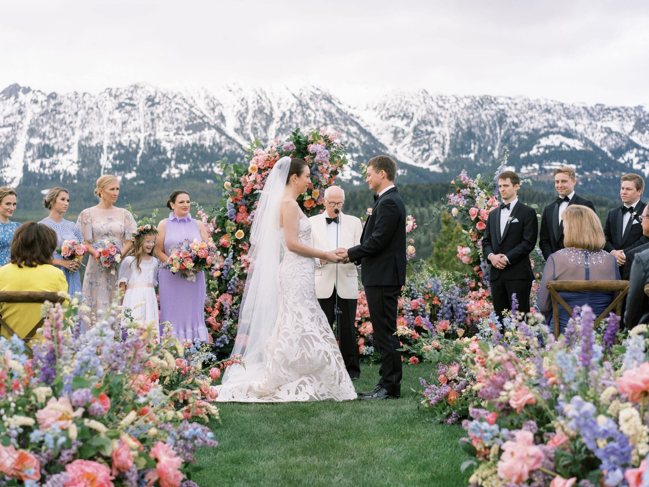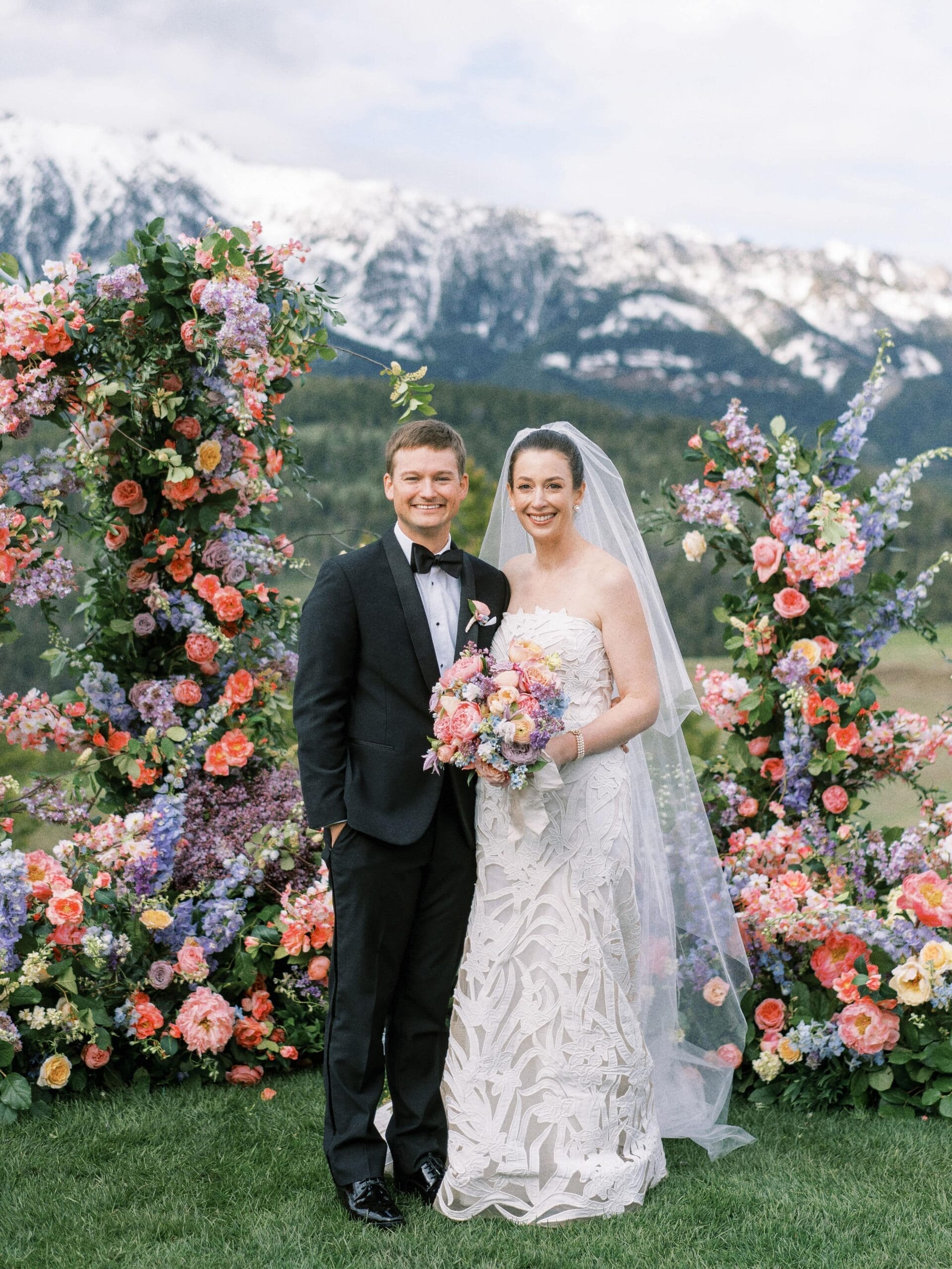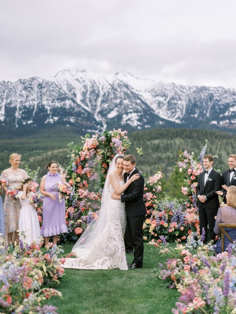 Drawing inspiration and their color palette from an Easter egg, Kate and Brian left no detail unnoticed. They wed amongst dripping florals, with the Spanish Peaks and Lone Mountain as their backdrop. Their reception boasted vintage china and vibrant florals. We find a new design element to love each time we look at these photos.