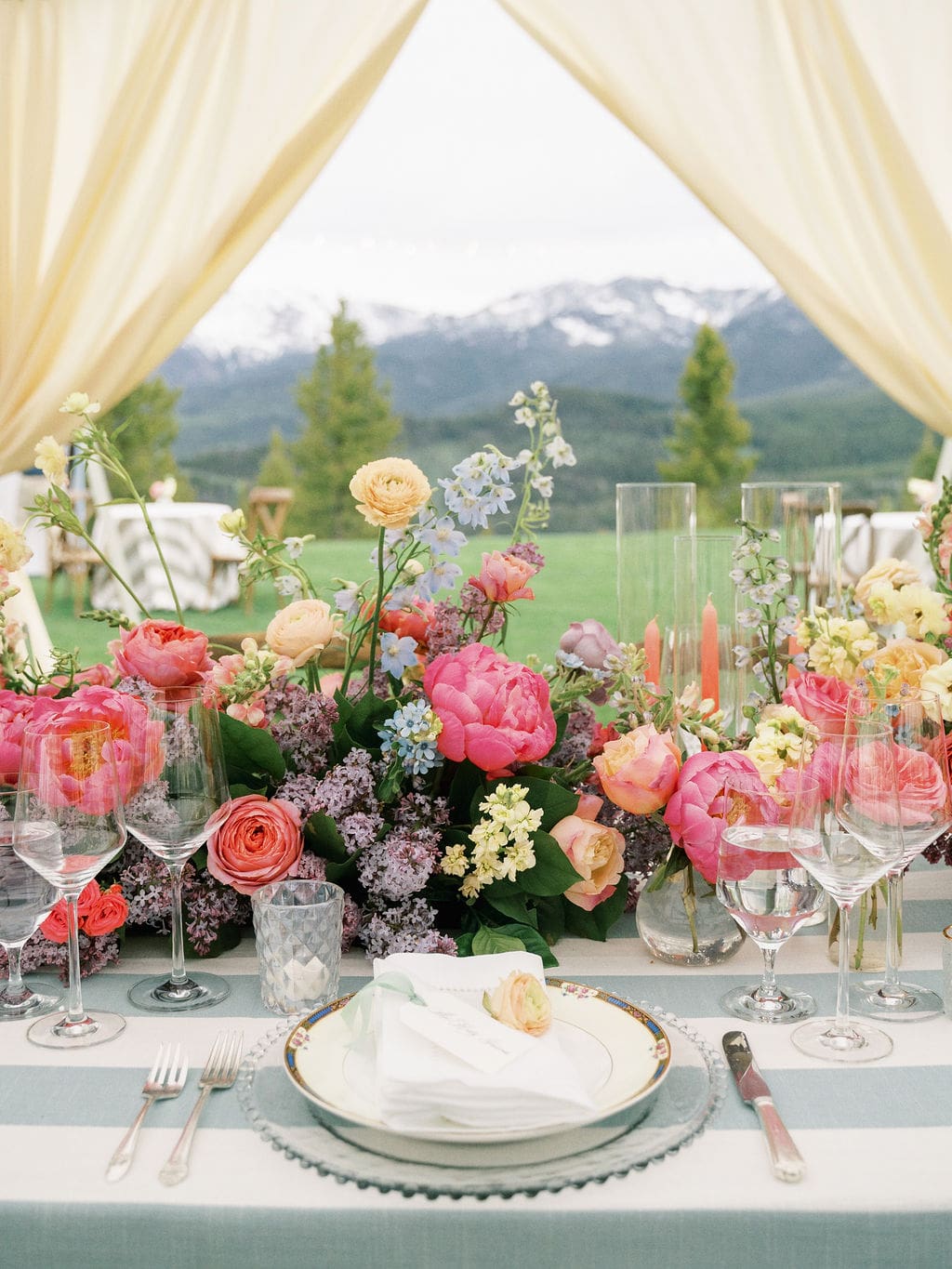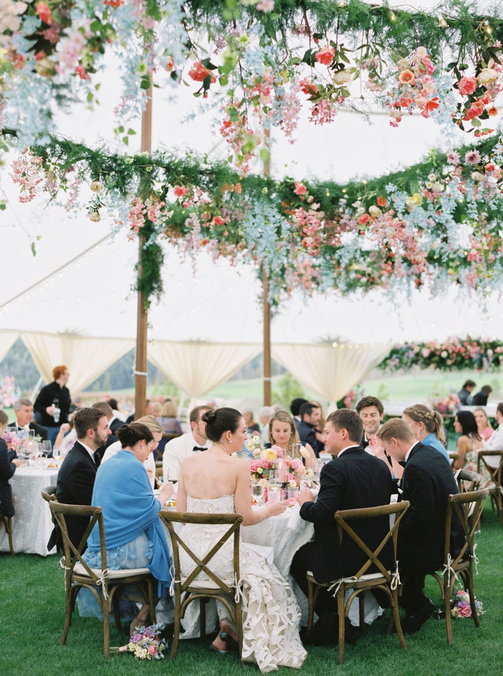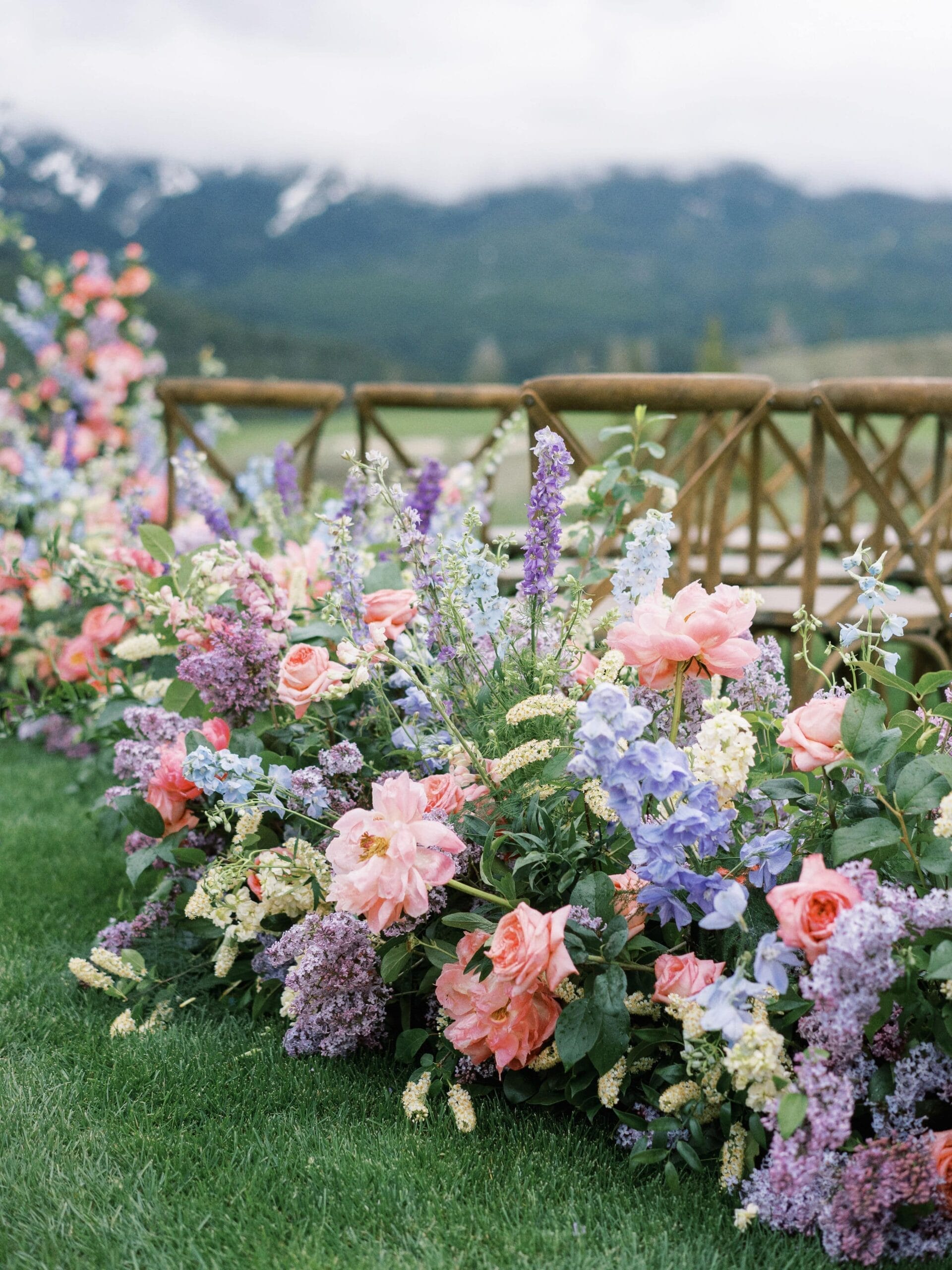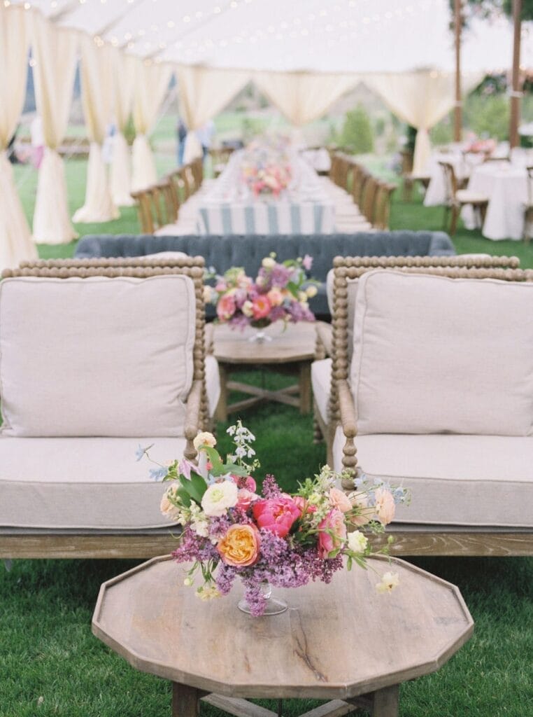 Drawing inspiration and their color palette from an Easter egg, Kate and Brian left no detail unnoticed. They wed amongst dripping florals, with the Spanish Peaks and Lone Mountain as their backdrop. Their reception boasted vintage china and vibrant florals. We find a new design element to love each time we look at these photos.
