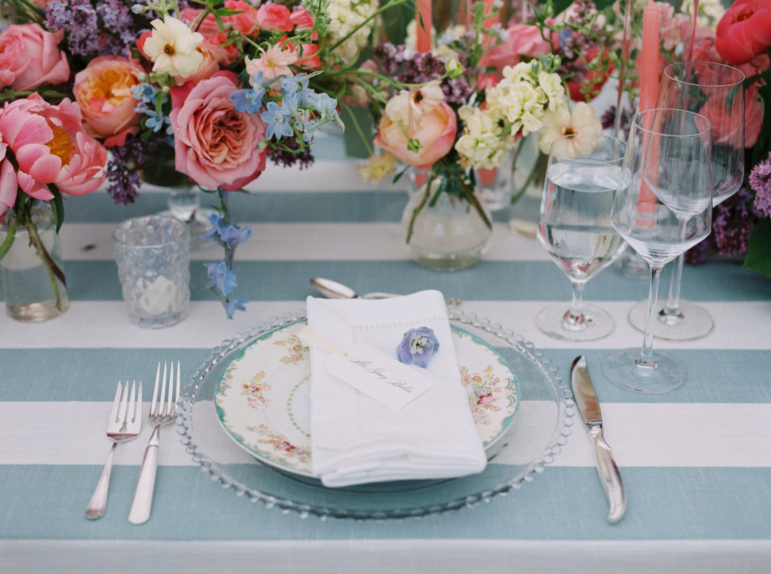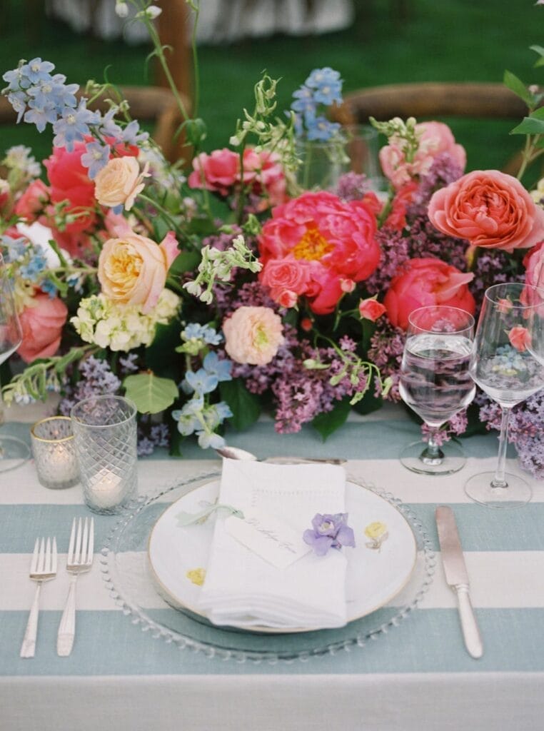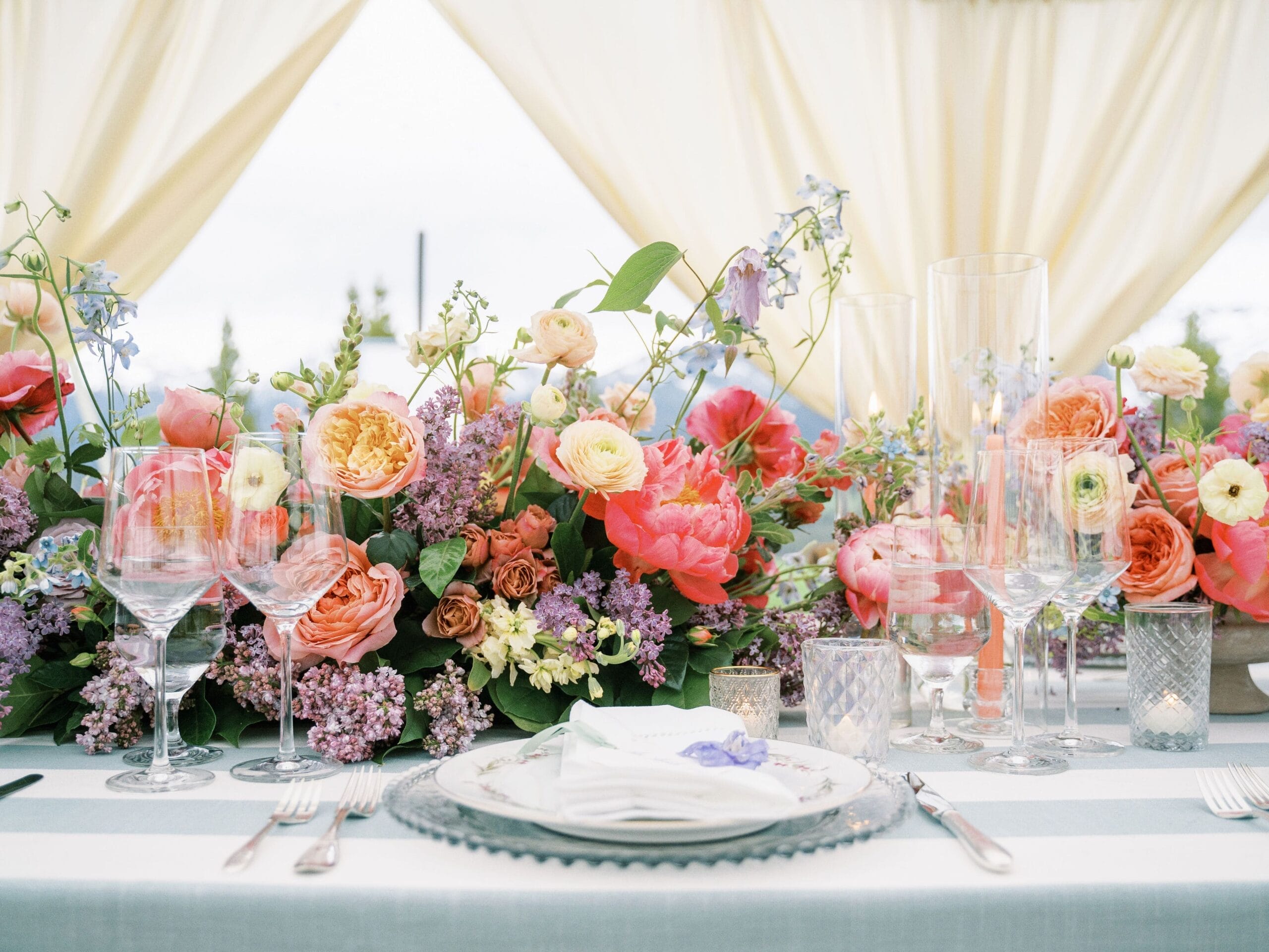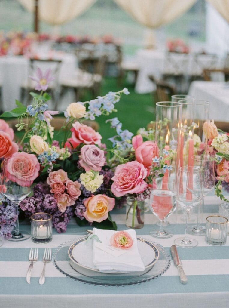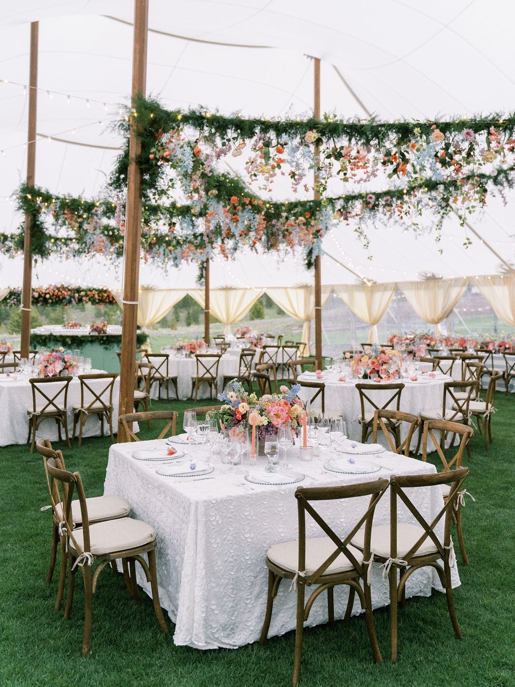 Drawing inspiration and their color palette from an Easter egg, Kate and Brian left no detail unnoticed. They wed amongst dripping florals, with the Spanish Peaks and Lone Mountain as their backdrop. Their reception boasted vintage china and vibrant florals. We find a new design element to love each time we look at these photos.