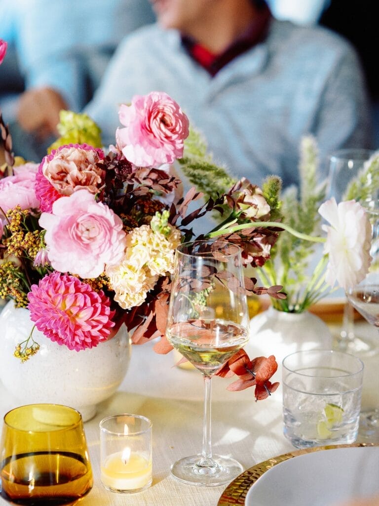 A combination of mixed metals, feminine florals, and plenty of libations on the patio made this the liveliest summer event. We wish every birthday looked like this.