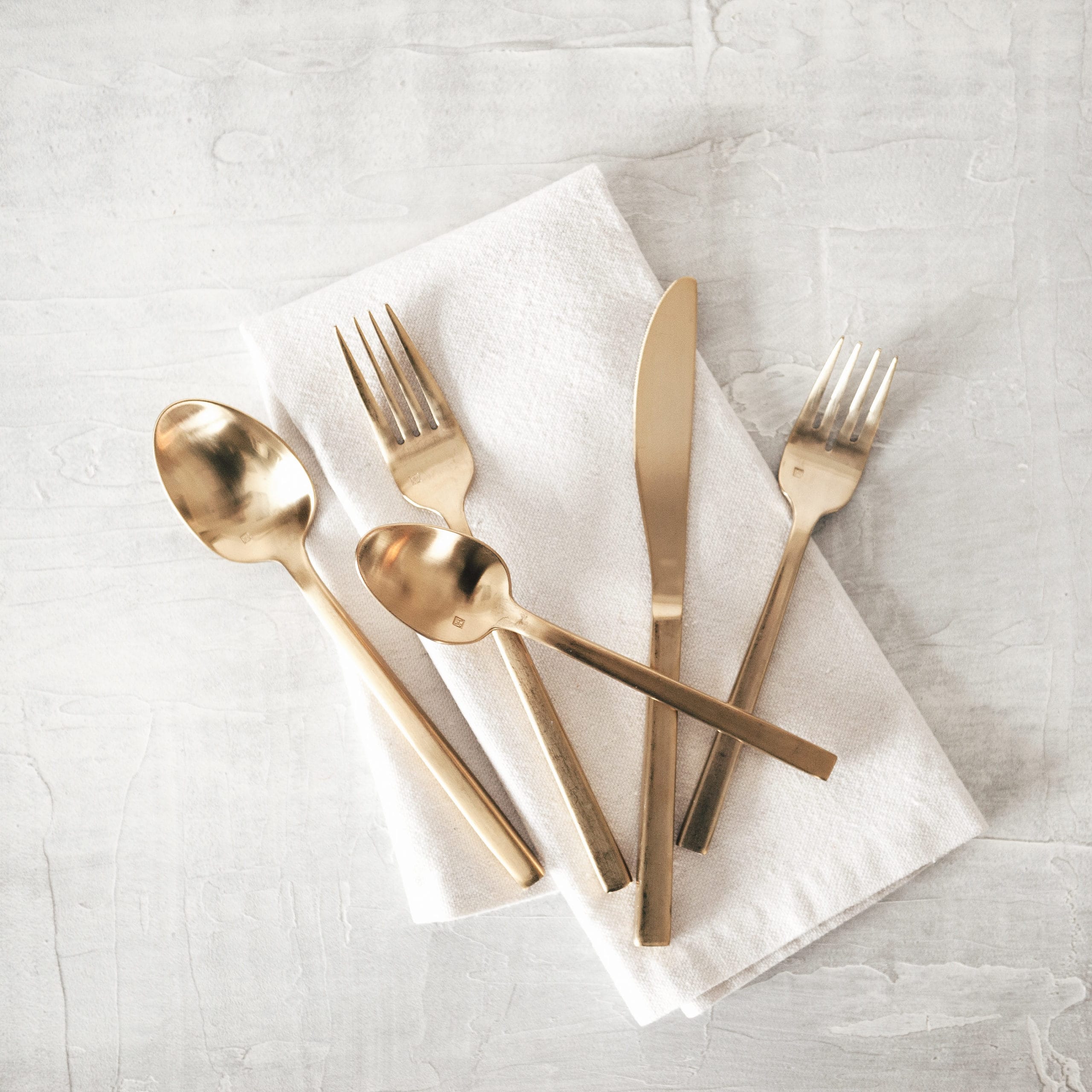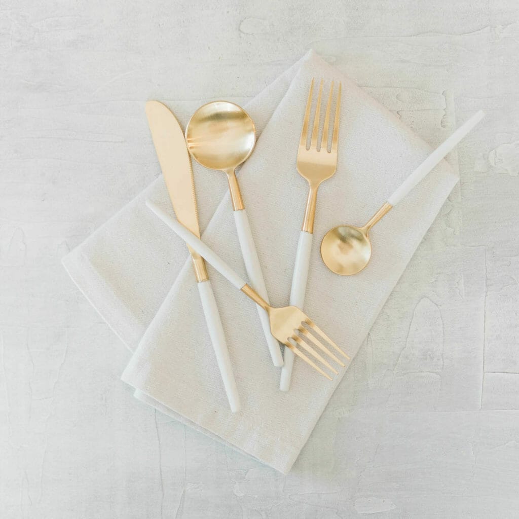 When looking to add a bit of shimmer to your tabletop we always suggest starting with flatware. It’s hard to achieve that balance of too much or too little sparkle and flatware has a set number to add the perfect touch. Not too much and not too little.